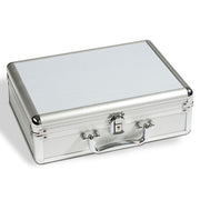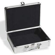 - Helt fodrad med mörkblå velour, användarvänlig åtkomst för att ta bort brickorna, låsbar (2 nycklar), metallhörn.